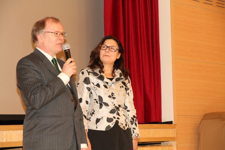 Puolangan kunnanjohtaja Seppo Rajala sekä Ristijärven kunnanjohtaja Raija Potila